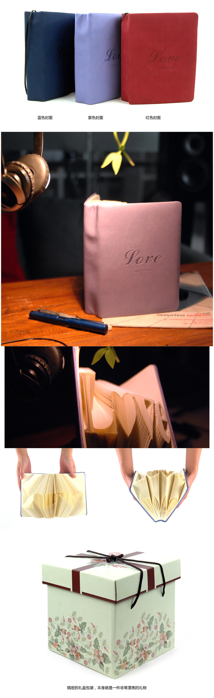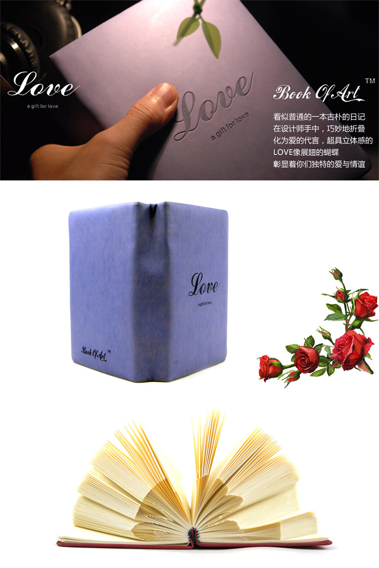 演示产品,请勿购买!! 演示产品,请勿购买!! 看似普通的一本古朴的日记,在设计师手中,巧妙地折叠,化为爱的代言,超具立体感的LOVE像展翅的蝴蝶,彰显着