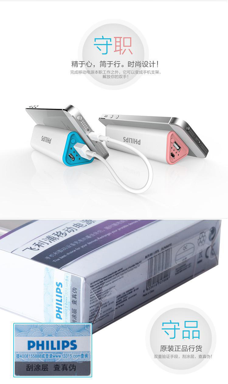 飞利浦移动电源DLP2020-粉色