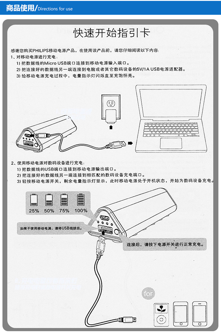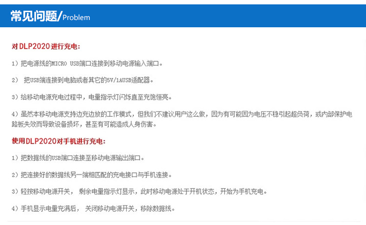 DLP20202移动电源1个,Micro连接线1条