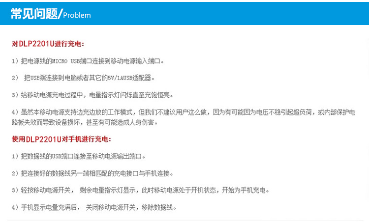 DLP2201U移动电源1个,Micro连接线1条